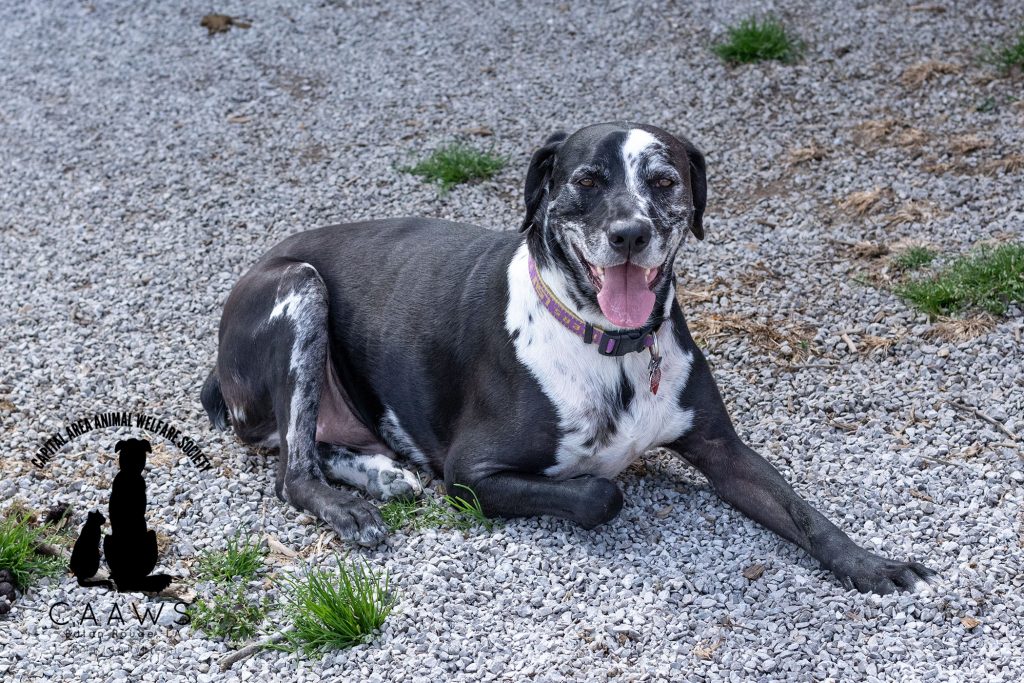 Harley is a big baby (95 lbs) that thinks he is a lap dog. He has a lot of energy, loves to tear up stuffed toys, chew on bones, and to snuggle. He would probably do best in a home without small children just because he tends to knock people over sometimes. He would be best suited for someone who is a strong handler and has experience with large dogs.