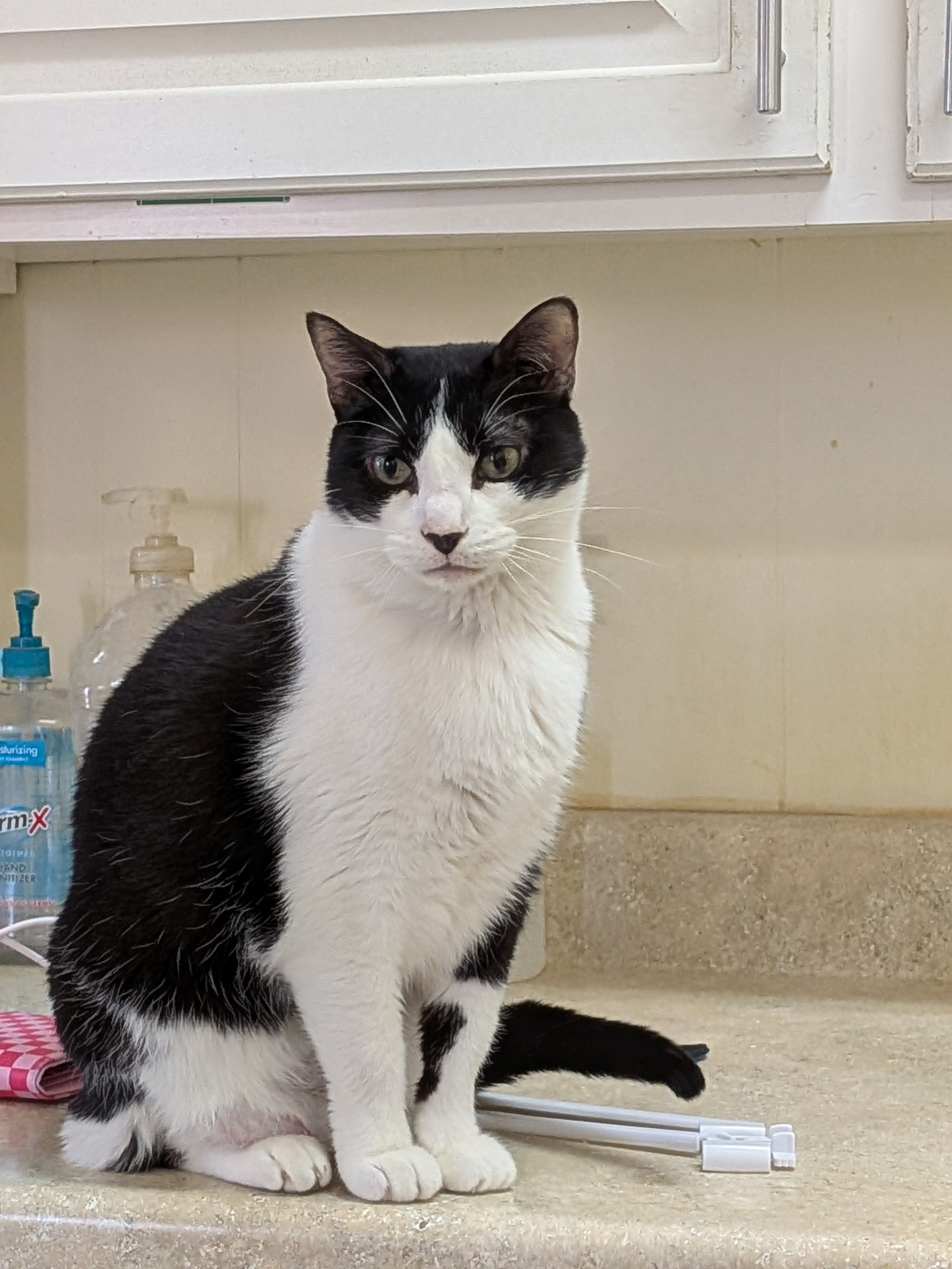 One pee on the floor, none of the kitties took responsibility, so I assume it was a dog room volunteer. Food levels looked good, water changed, treats given OH MAN AS I WAS WRITING THIS ONE OF THEM PEED ON THE WALL ON THE COUNTER RIGHT IN FRONT OF ME. (the bad black and white one, I forget who’s who). Pic unrelated.