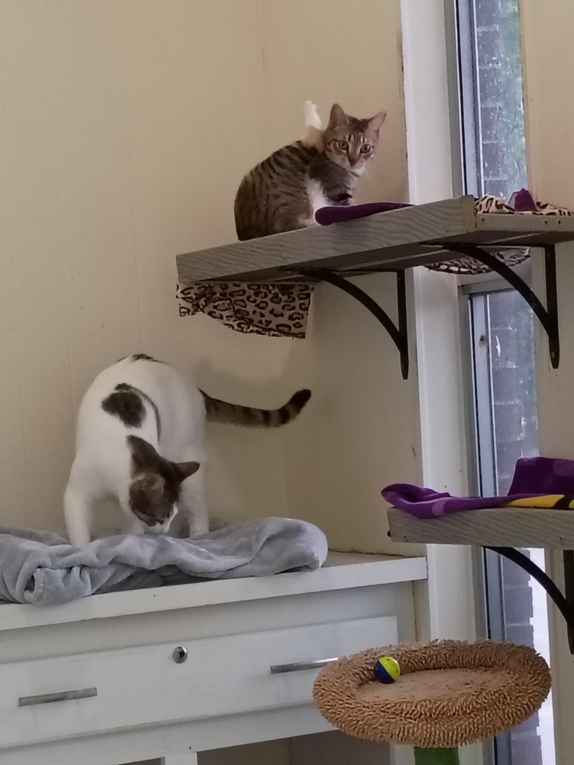 Chill in the cat room this evening. We did all chores and cleaned the room. Added 5 scoops of food and lysine. I gave Nola her meds and gave her some temptations after it. The cats all got lots of pets and treats and enjoyed playtime. Phia seems like she’s doing great and fitting along with the other cats. She’s much more relaxed!